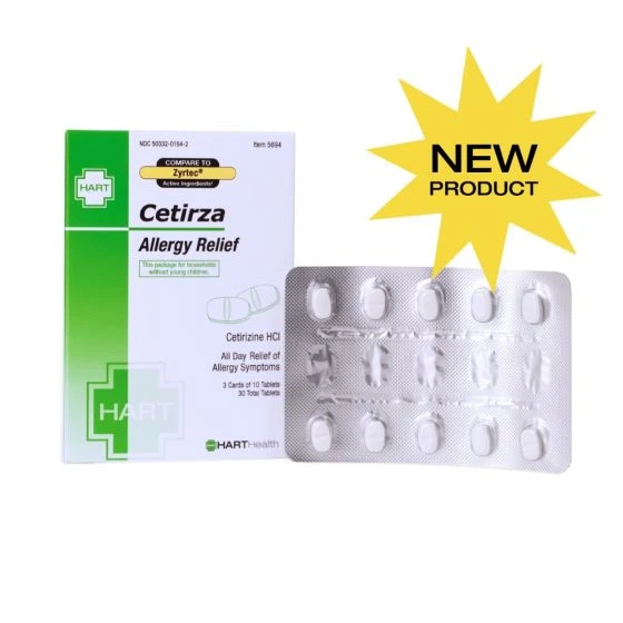Cetirizine HCI, All Day relief of allergy symptoms, 3 cards of 10 tablets, 30/Box. Compare to Zyrtec ®