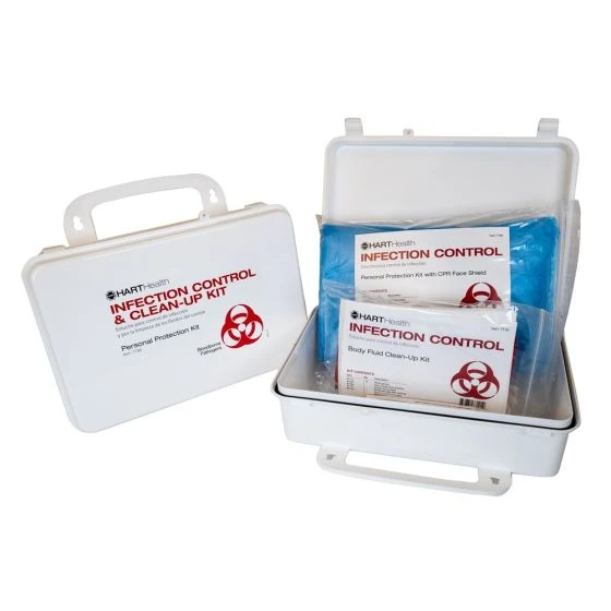Hart infection clean up kits meet OSHA requirements for protection against certain viruses exposure such as, HIV, hepatitis, and other bloodborne pathogens. Kits are rugged and durable, feature high quality graphics.