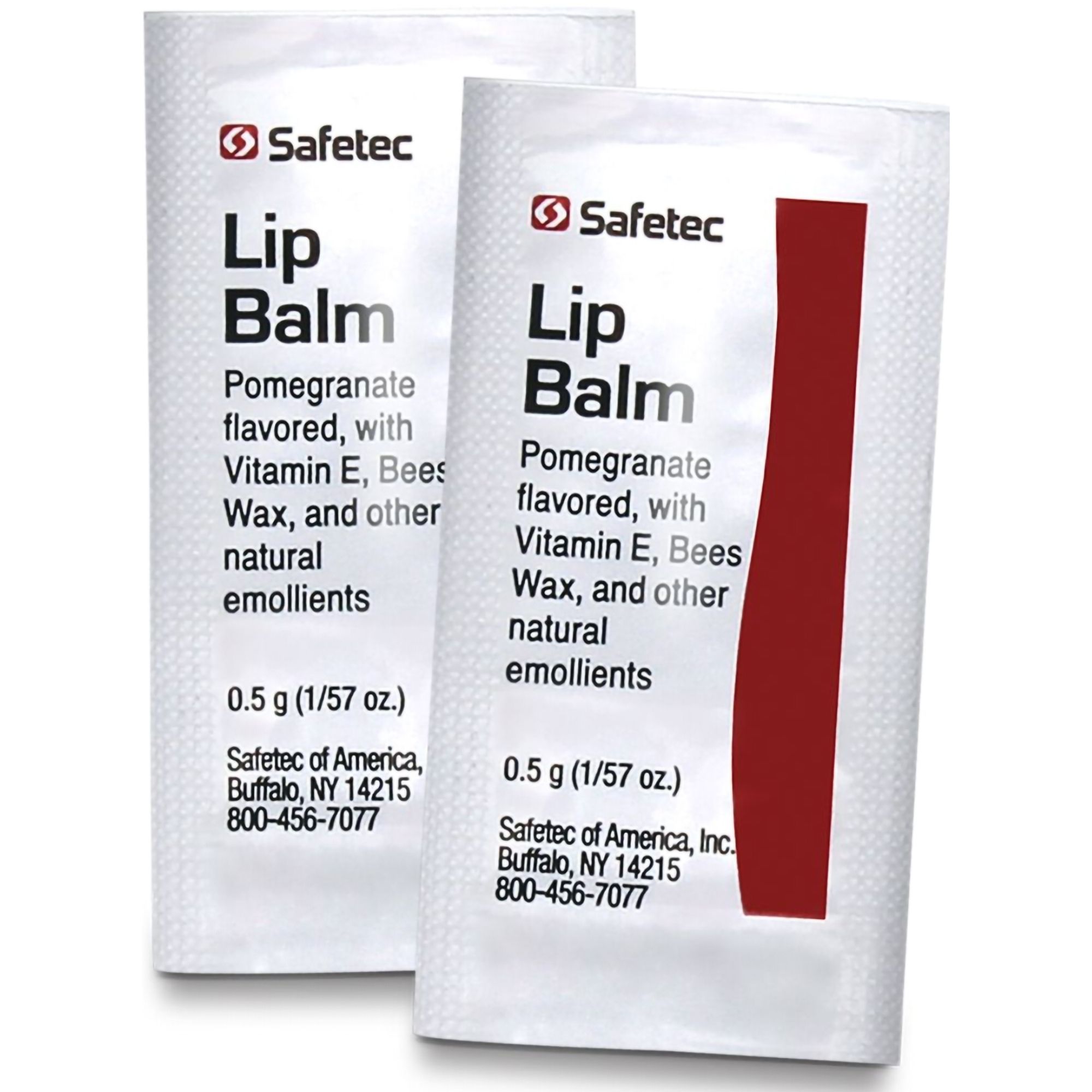 Use to soothe and hydrate dry lips, pomegranate flavored, with vitamin E, bees wax, and other natural emollients. 10 .5g packs per bag.